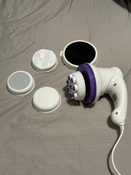 El Masajeador Anticelulítico 5 en 1 Dermalux combina rotación, vibración y calor infrarrojo para ofrecer un tratamiento corporal completo desde la comodidad de tu hogar.